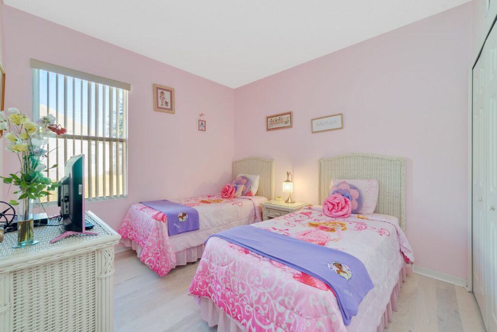Discover a spacious 5-bedroom villa featuring two master suites, themed children’s rooms, and a private pool, all nestled in a secure gated community close to Orlando’s top attractions.